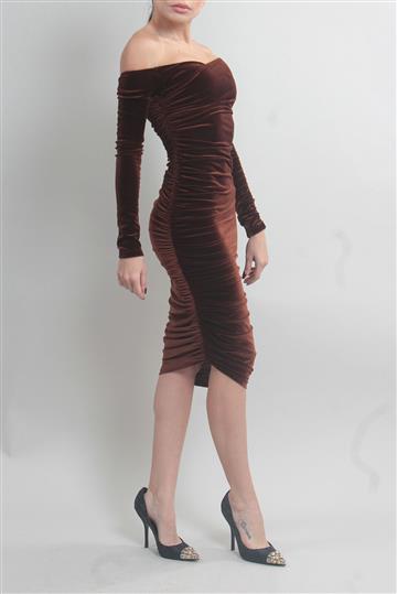 Vestido ALIX NYC Veludo Drapeado Marrom