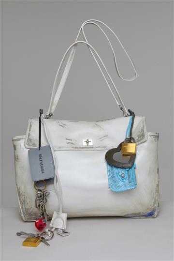 Bolsa Balenciaga Rodeo Large Handbag Used Effect With Charms Branca