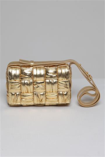Bolsa Bottega Veneta Intrecciato Cassete Dourado