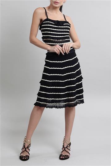 Vestido Christian Dior Evasê Tricô Laço Listrado