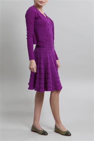 Conjunto Christian Dior Vestido e Cardigan Tricô de Seda Roxo