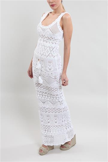 Vestido Emilio Pucci Longo em Crochê Branco