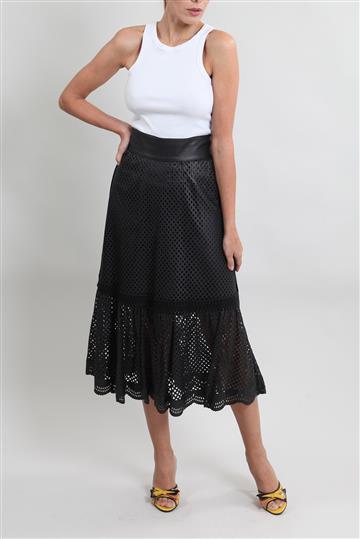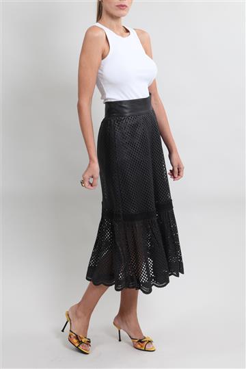 Saia Lica Melzer Midi em Couro com Recortes Preto