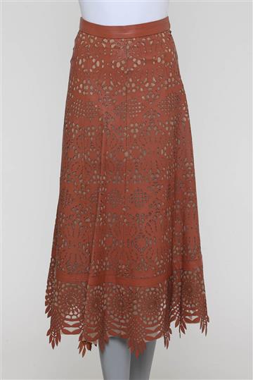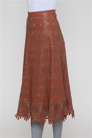 Saia Patricia Viera Couro Texturizado Midi Terracota