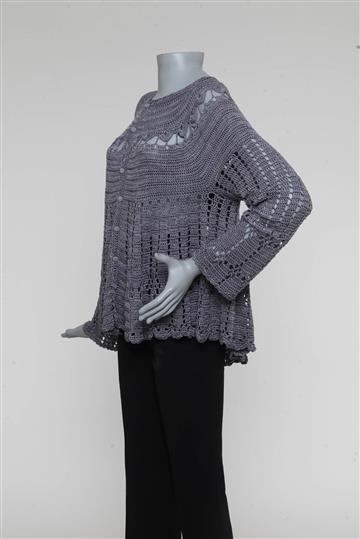 Casaqueto Vanessa Montoro Crochê de Seda Cinza