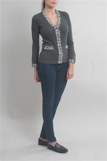 Cardigan Chanel Tweed Canelado Cinza