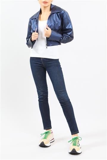 Jaqueta Andrea Bogosian Couro Metalizada Azul