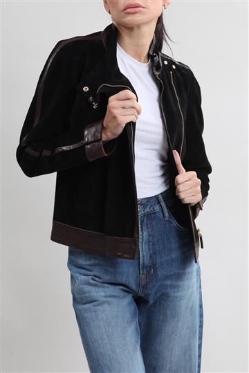Jaqueta Gucci Bomber Camurça e Couro Preta Bicolor