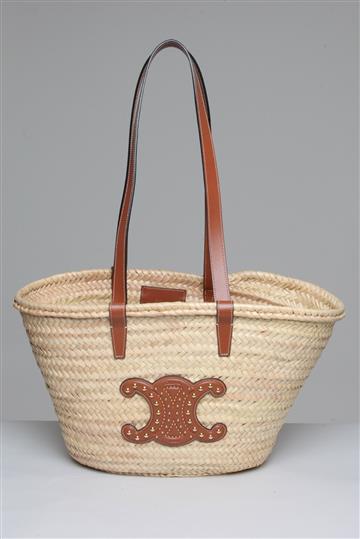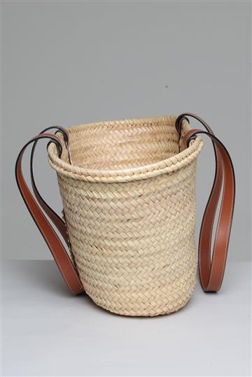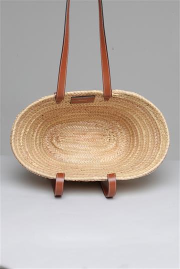 - Bolsa em ráfia encorpada com detalhes em couro