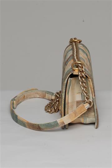 - Alça dupla composta por corrente com elos amplos e ombreira de espessura reduzida