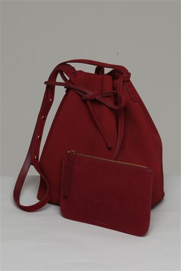 - Bolsa em couro macio e de toque aveludado com leve brilho