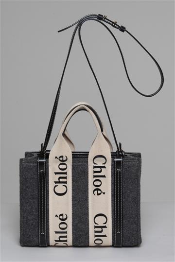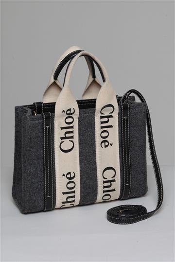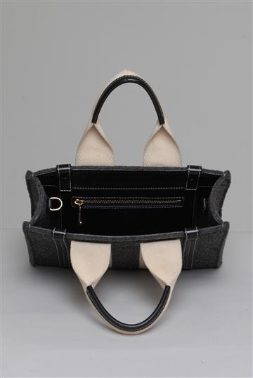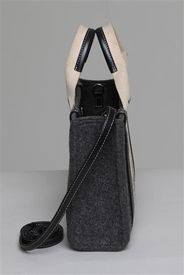 - Bolsa em feltro encorpado e macio com detalhes em lona e couro