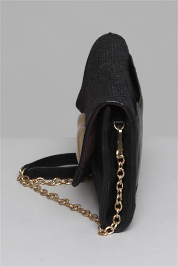 - Bolsa clutch em couro com detalhes em sisal
