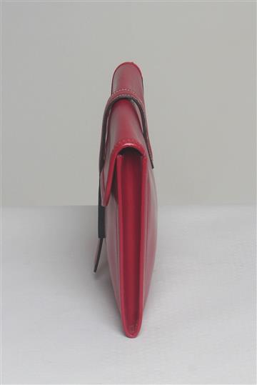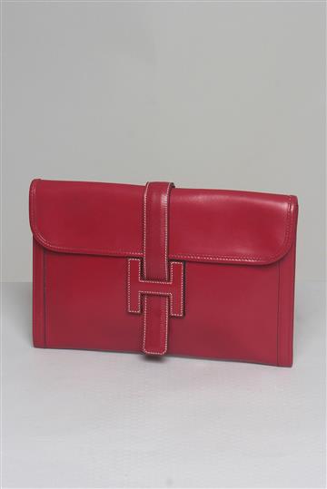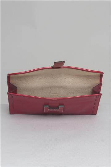 - Fecho frontal com tira de couro aplicada e 'H' em couro