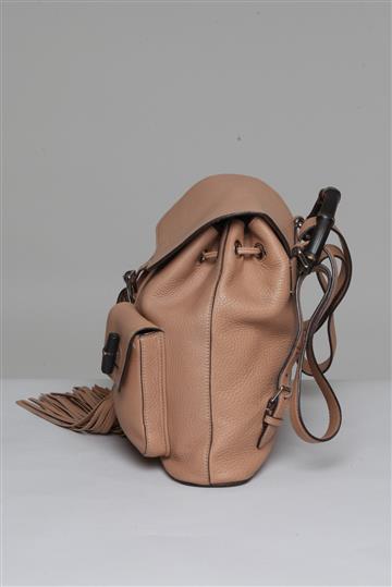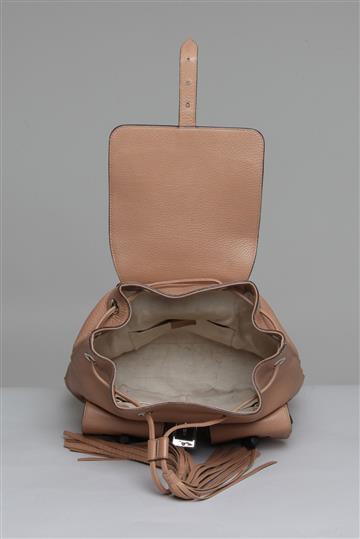 - Bolsos frontais com abas e fechamento por botões de bambu