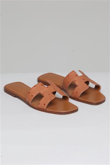 Flat Hermès Oran Avestruz Caramelo