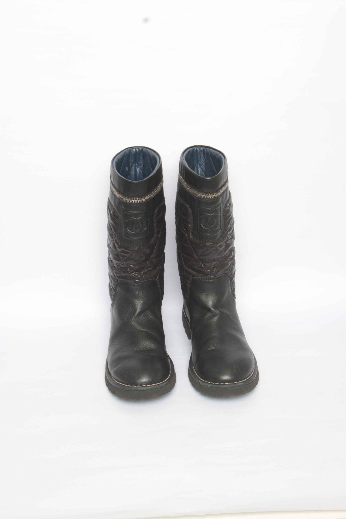 Bota Chanel Metalassê Zíper Preto