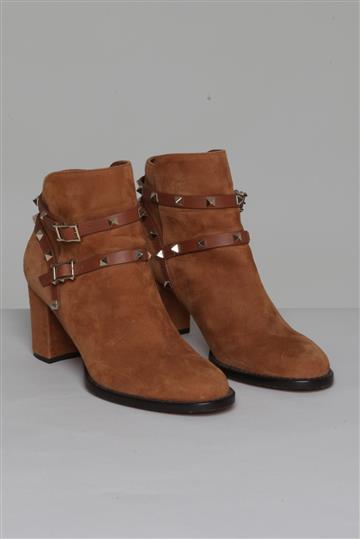 Bota Valentino Ankle Boot Camurça Rockstud Caramelo