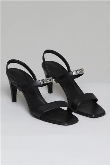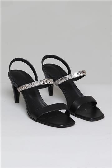 Sandália Chanel T-Bar Corrente e Pérolas Salto Bloco Preta