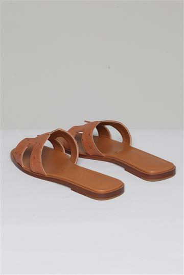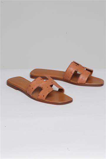 - Sandália estilo rasteirinha em couro de avestruz
