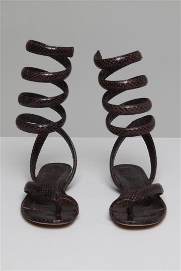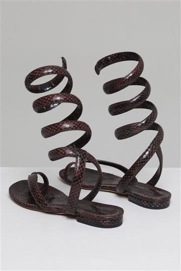 - Sandália rasterinha em couro texturizado estilo python
