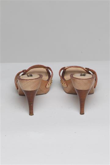 - Tira superior com recortes e pespontos decorativos para encaixe dos pés
