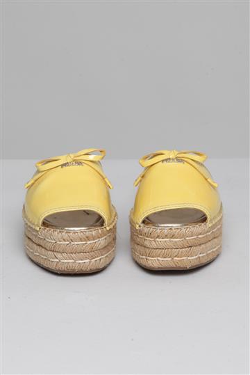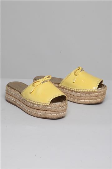 - Tamanco em couro envernizado e sisal