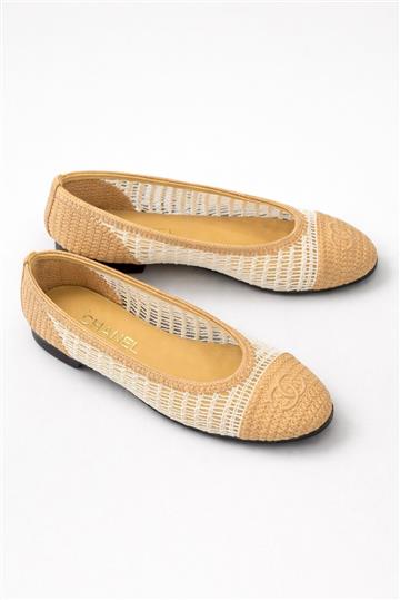 - Sapatilha em tecido telado com detalhes em crochê