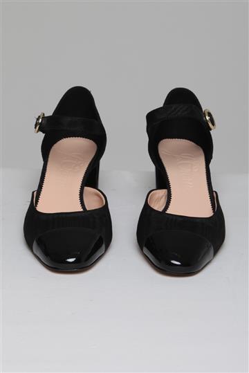 - Bico arredondado frontal com biqueira em couro envernizado