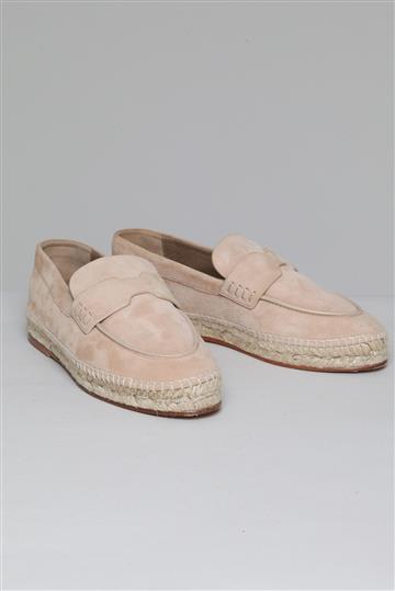 - Mocassim estilo alpargata em camurça com detalhes em sisal