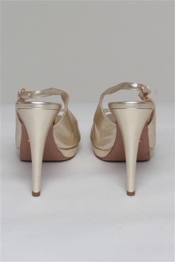 - Tira posterior com pequena fivela metálica lateral para fechamento