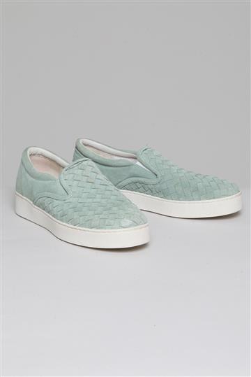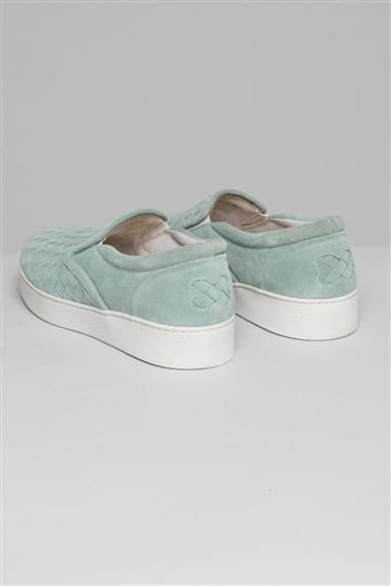 - Recortes laterais aparentes com elasticidade aplicada para melhor ajuste aos pés