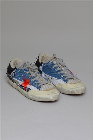 - Tênis em veludo com detalhes em gorgurão e pelo sintético