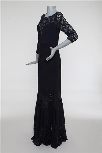 Vestido Manga Longa Tadashi Shoji Renda Bordado Azul