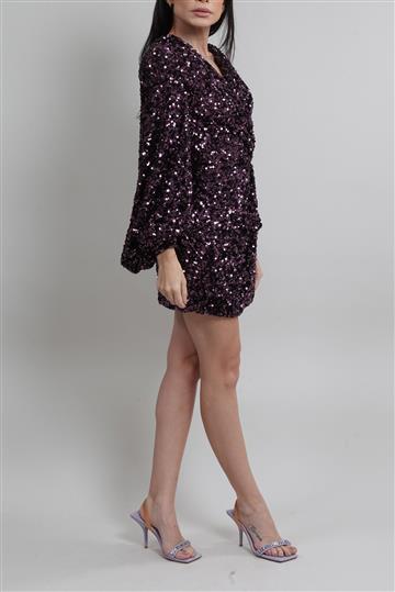 Vestido Bronx & Banco Paetês Drapeado Roxo