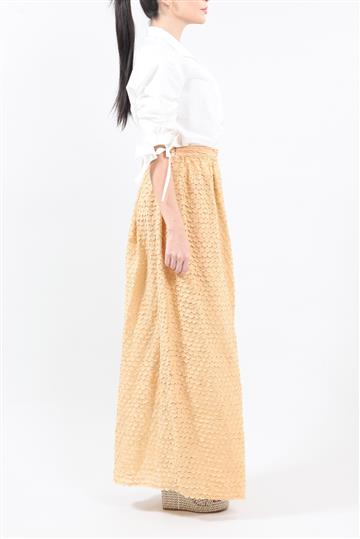 Saia Paula Raia Longa de Seda com Aplicações Círculos Bege