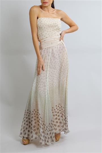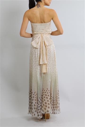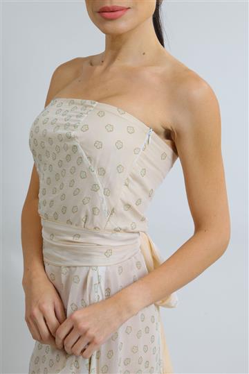 - Vestido de seda- Estampa floral em tons pasteis- Modelo tomara que caia- Faixa da mesma cor para amarração