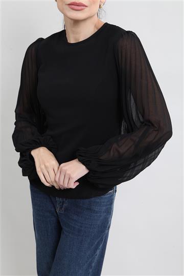 Blusa Zimmermann Manga Plissada Transparência Preto