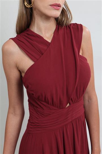 Vestido Cris Barros Decote Transpassado e Recortes Vermelho