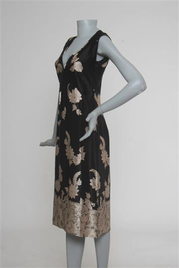 Vestido Seda Estampado Preto Bicolor