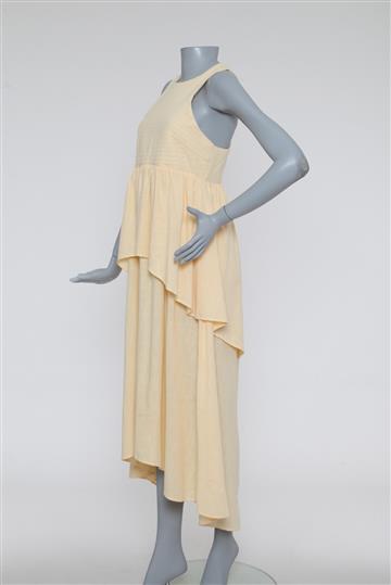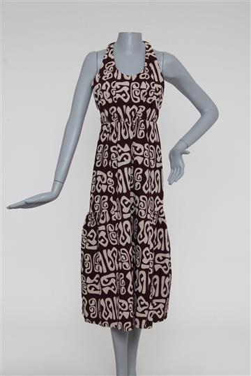 Vestido A. Niemeyer Alça Fina Linhão Estampado Bege