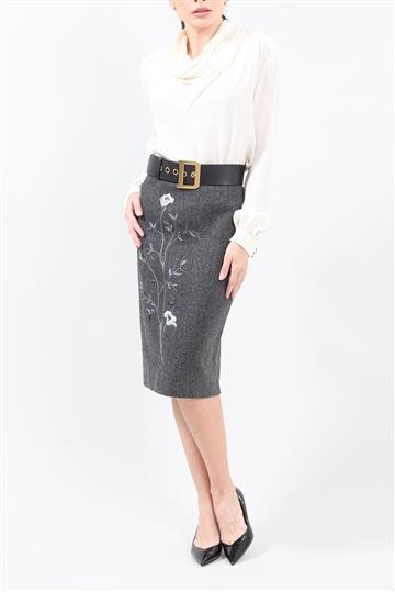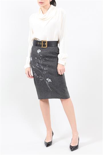 Saia Dolce & Gabbana Lápis Escama de Peixe Bordada Cinza