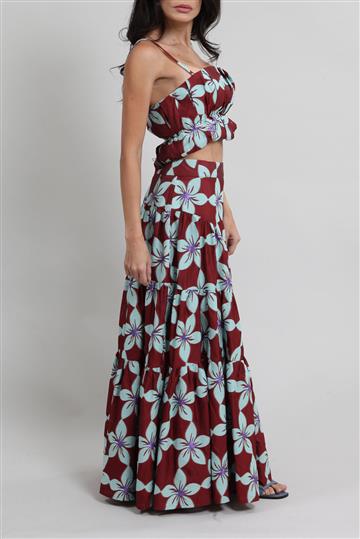 Conjunto Cruise Top e Saia Floral Bordô