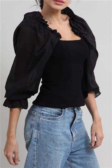 Blusa Cris Barros Mangas Bufantes e Babados Preta