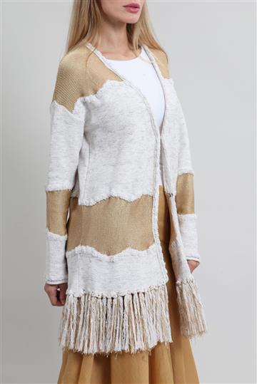 Cardigan Cris Barros Tricôt e Franjas Bege
