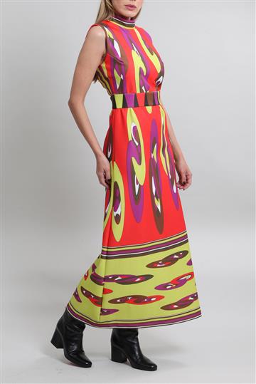 Vestido Allmost Vintage Longo Gola Alta Colorido