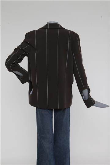 - Abertura frontal alongada com lapelas de ponta clássicas