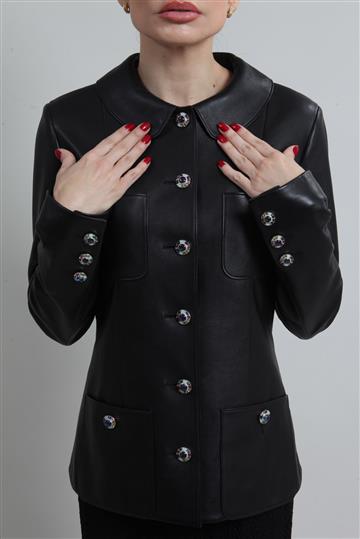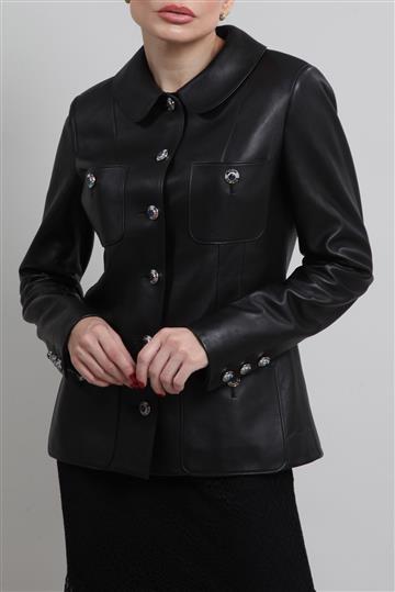 - Casaco em couro liso e macio