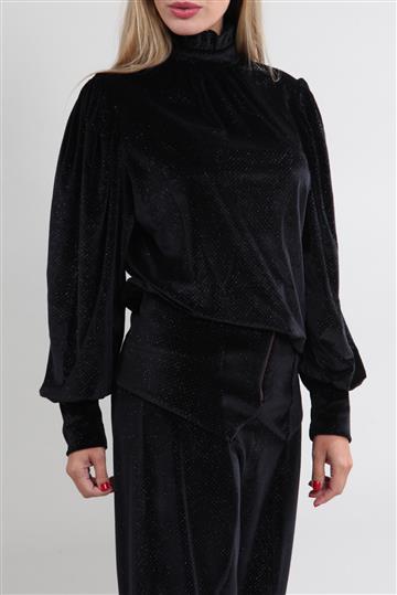 Blusa A. Niemeyer Lurex Gola Alta Preta