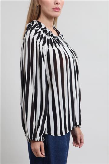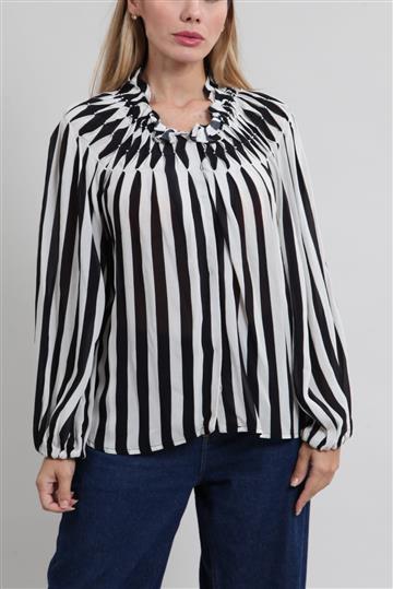 - Blusa em tecido leve e ligeiramente fluido